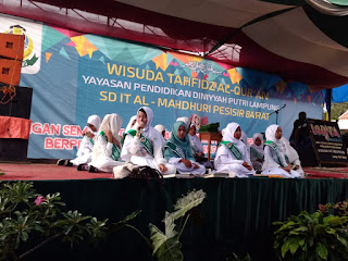 wisuda tahfis yang di laksanakan tersebut adalah pemberian penghargaan kepada siswa-siswi yang telah menyelesaikan hapalan AL-Qur’an pada jus 1, jus 2, jus 3 dan jus 4 dengan rincian siswa yang selesai jus 1 sebanyak 67, jus 2 sebanyak 77, jus 3 sebanyak 32 siswi dan jus 4 sebanyak 2 orang.