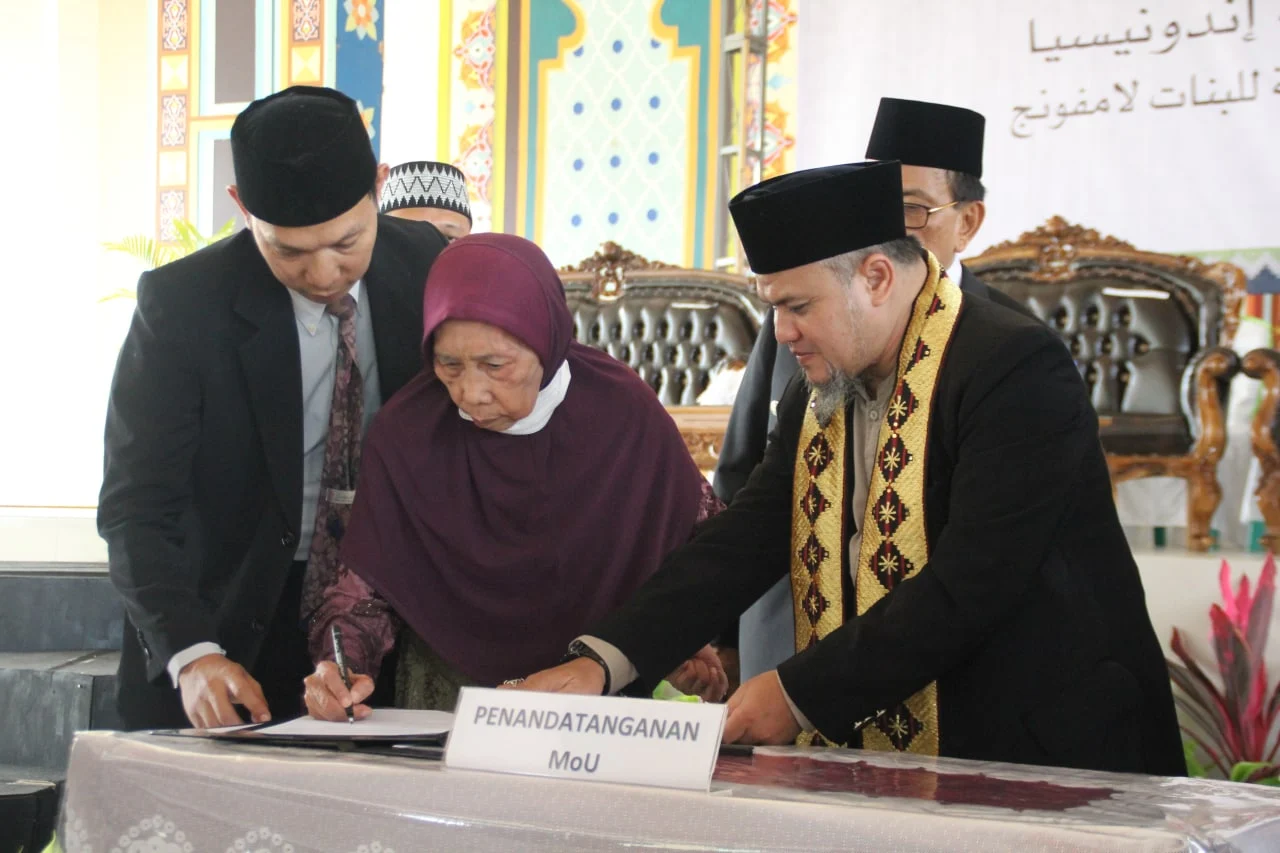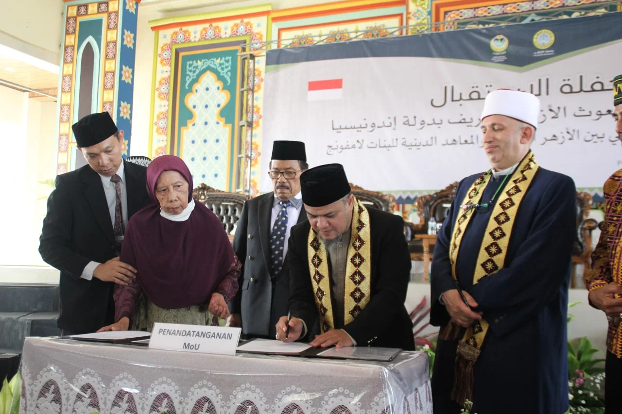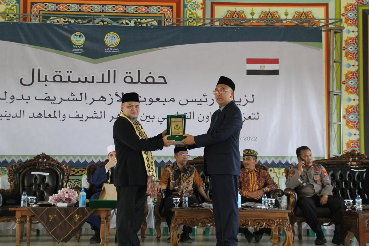 Lampung [26/11/2022] Ketua Delegasi Al Azhar Mesir untuk Indonesia, Dr. Fathallah Muhammad Fathallah didampingi Ketua Pengurus Ma’had Azhari Indonesia, Muchtar Sudibyo, Lc, MM. mengunjungi Perguruan Diniyyah Putri Lampung [PDPL]. Pimpinan PDPL, Dra. Halimah Syukur dan segenap jajaran pengurus, para guru, dan seluruh santri, dan tamu undangan menyambut para delegasi dengan gegap gembita di Aula.